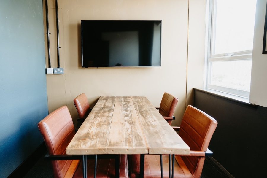 Booking our 4 to 6 person meeting room by the hour, with whiteboard, HDMI enabled screen, again, offering super fast Wi-Fi and refreshments as required.
